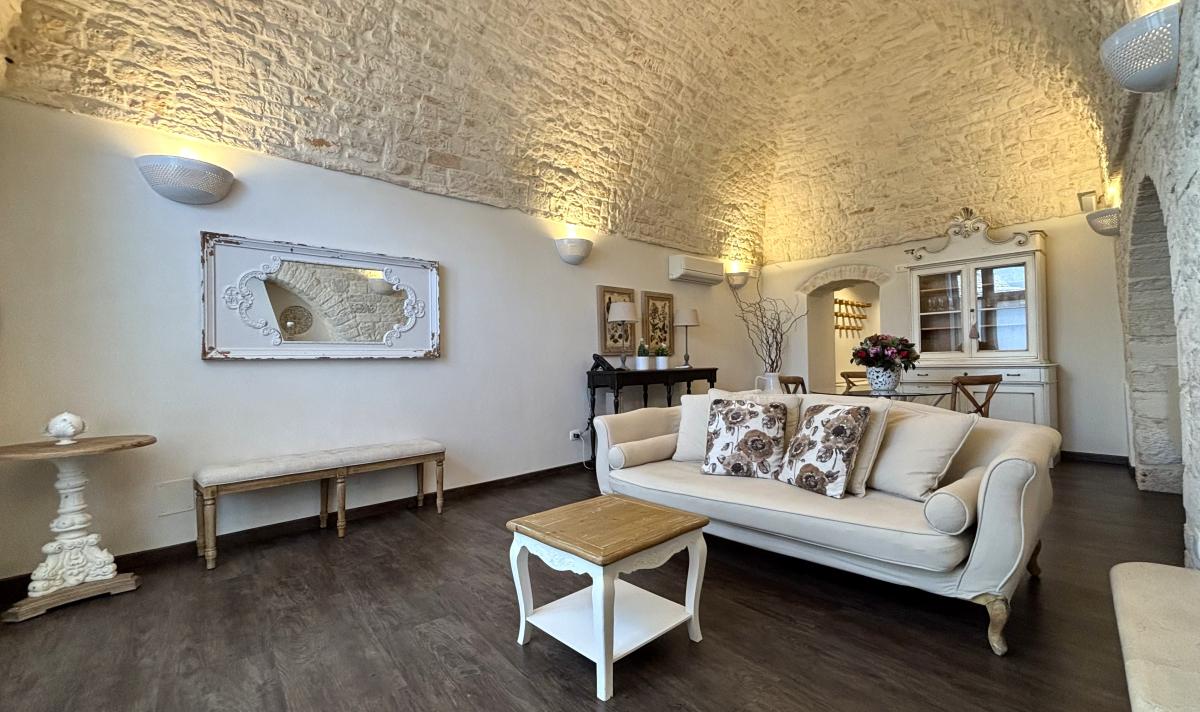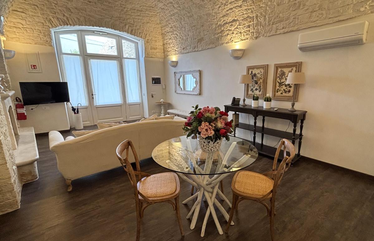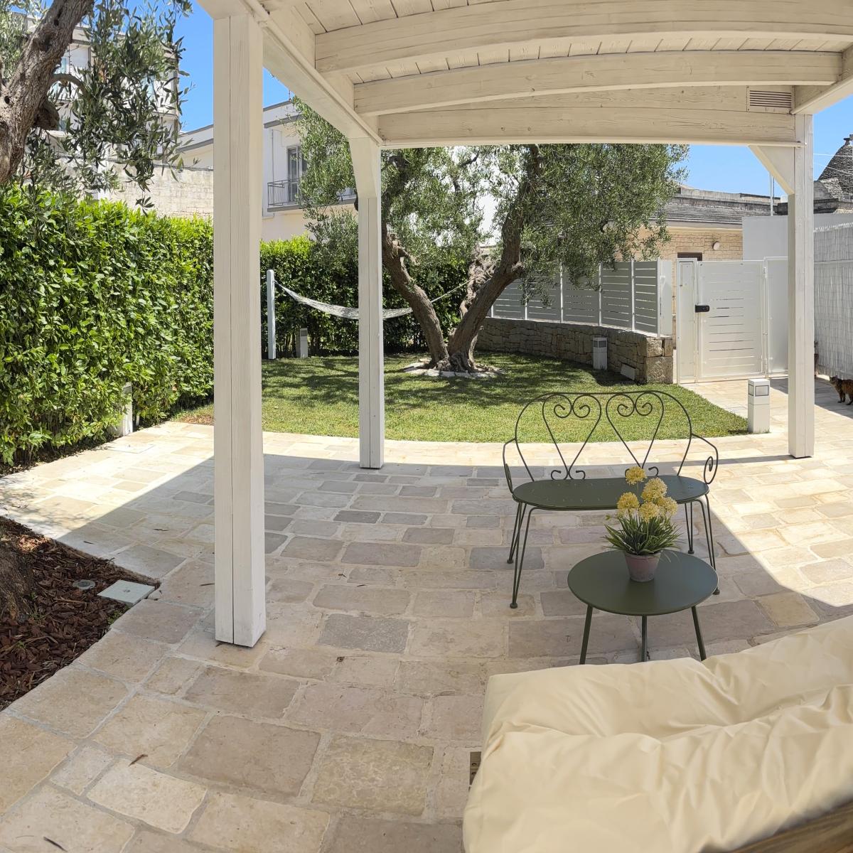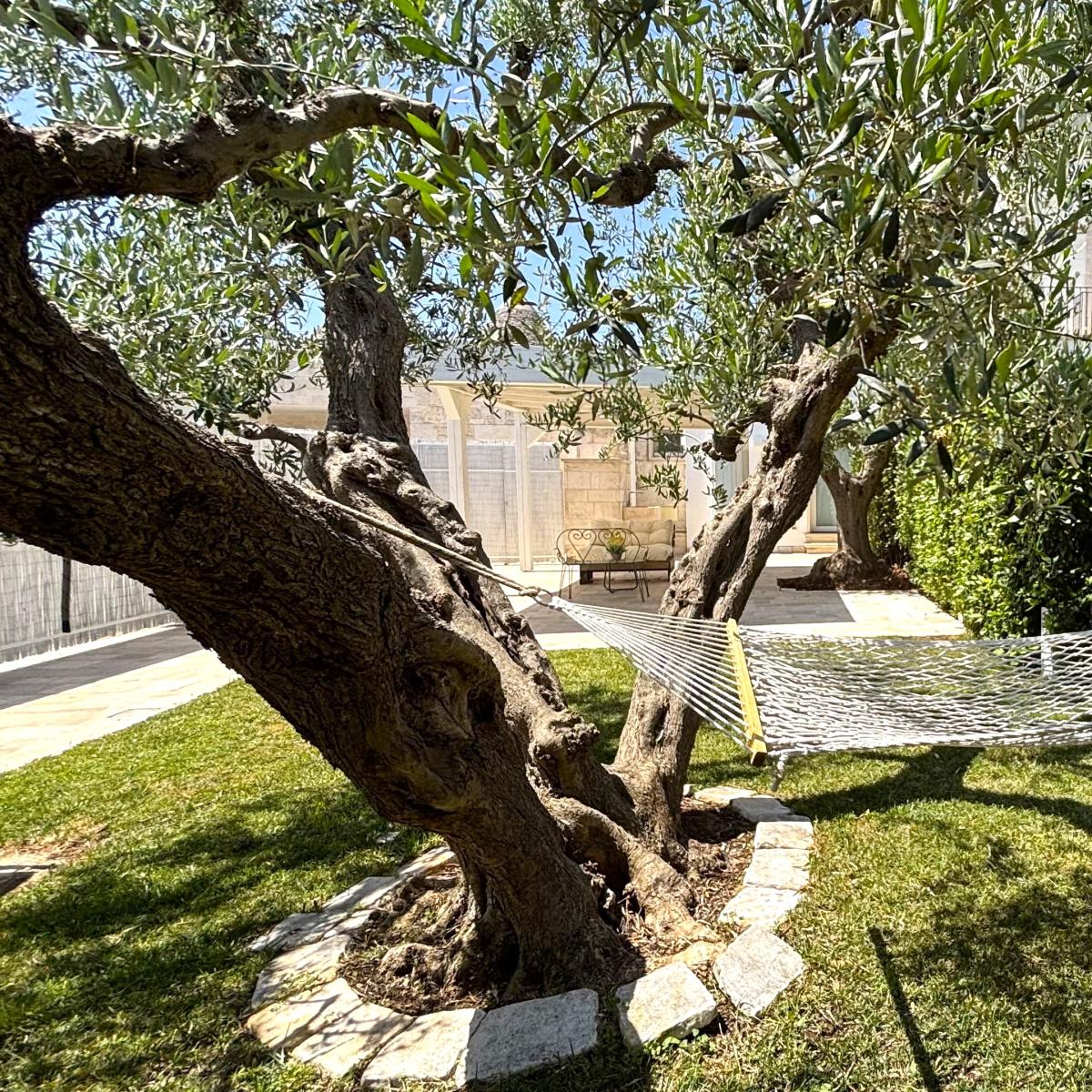 Situata nel centro storico di Alberobello, a pochi passi dalla suggestiva Aia Piccola e a soli 300 metri dal celebre Rione Monti con i suoi oltre 1400 trulli, la Cummersa Trulli Holiday è una dimora tipica che unisce eleganza, tradizione e comfort moderno. L’alloggio si apre su un’ampia living room in pietra viva, caratterizzata da una splendida volta a cummersa, comodo divano e arredi che valorizzano l’autenticità dell’ambiente senza rinunciare allo stile. La zona notte ospita un letto matrimoniale e un bagno privato dotato di tutti i comfort. La cucina abitabile, moderna e completamente attrezzata, conduce all’esterno verso un grande giardino privato, un angolo verde con amaca dove rigenerarsi tra ulivi secolari e altre piante tipiche del Mediterraneo. Il giardino, arricchito da un gazebo, è ideale per momenti di pace o per concedersi massaggi all’aperto, immersi nei profumi e nei suoni della natura pugliese. Perfetta per le coppie in cerca di autenticità e benessere, la Cummersa è il punto di partenza ideale per esplorare le meraviglie della Valle d’Itria, vivendo l’esperienza unica di soggiornare nel cuore di un patrimonio mondiale.