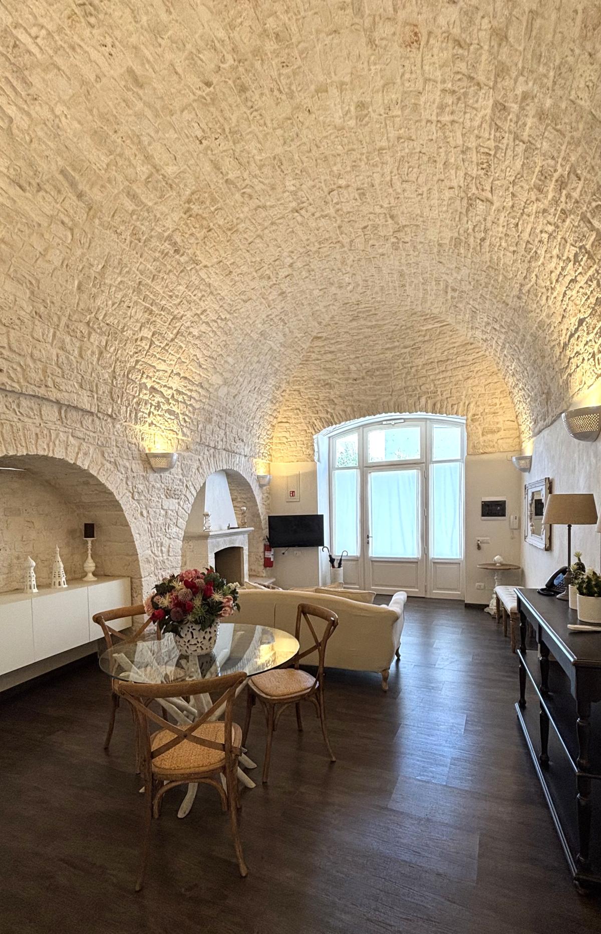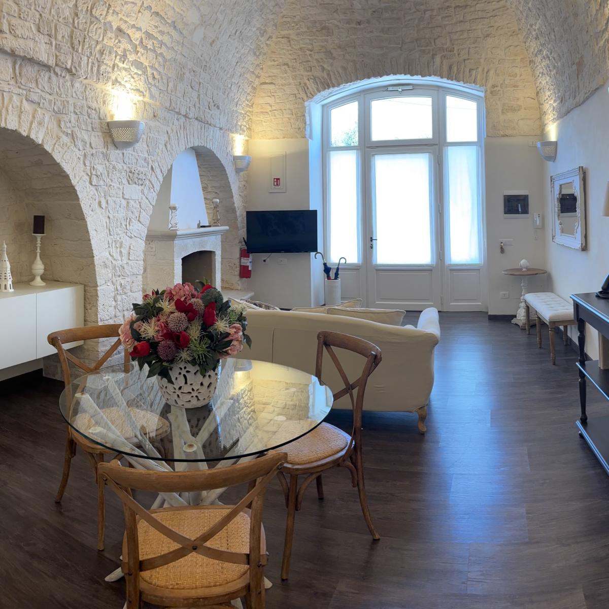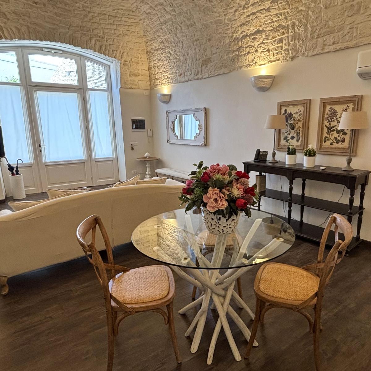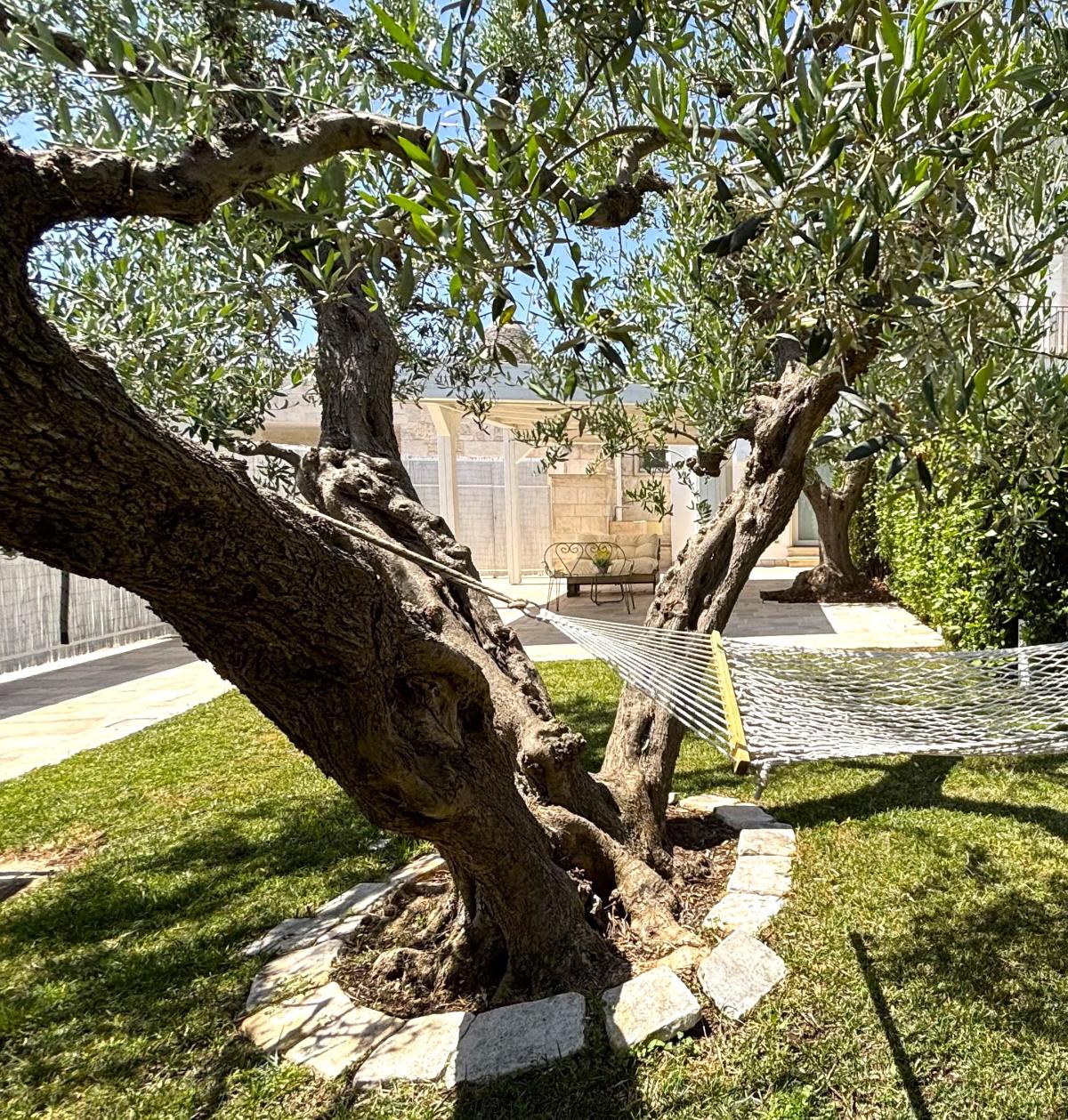 Situata nel centro storico di Alberobello, a pochi passi dalla suggestiva Aia Piccola e a soli 300 metri dal celebre Rione Monti con i suoi oltre 1400 trulli, la Cummersa Trulli Holiday è una dimora tipica che unisce eleganza, tradizione e comfort moderno. L’alloggio si apre su un’ampia living room in pietra viva, caratterizzata da una splendida volta a cummersa, comodo divano e arredi che valorizzano l’autenticità dell’ambiente senza rinunciare allo stile. La zona notte ospita un letto matrimoniale e un bagno privato dotato di tutti i comfort. La cucina abitabile, moderna e completamente attrezzata, conduce all’esterno verso un grande giardino privato, un angolo verde con amaca dove rigenerarsi tra ulivi secolari e altre piante tipiche del Mediterraneo. Il giardino, arricchito da un gazebo, è ideale per momenti di pace o per concedersi massaggi all’aperto, immersi nei profumi e nei suoni della natura pugliese. Perfetta per le coppie in cerca di autenticità e benessere, la Cummersa è il punto di partenza ideale per esplorare le meraviglie della Valle d’Itria, vivendo l’esperienza unica di soggiornare nel cuore di un patrimonio mondiale.