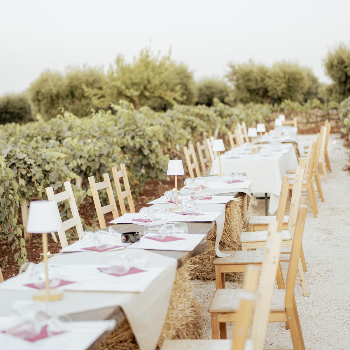 L’esperienza è pensata per gruppi di minimo 6 persone. Per coppie o piccoli gruppi: in cantina è sempre possibile partecipare gustando un tagliere misto preparato al momento (focaccia, capocollo, burratine, verdure di stagione, pomodoro secco e altri prodotti tipici). In vigna, è possibile aggregarsi ad altri ospiti se già è previsto un gruppo per la stessa data. In caso contrario, la degustazione si terrà all’interno della cantina.